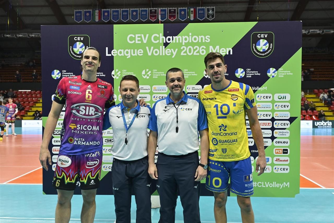 Сир Сикома Монини Перуджа затвърди лидерската си позиция в група С на Шампионска лига, след като надви Гуагуас Лас Палмас с 3:1(26:24,25:19,21:25,25:20) в мач, ръководен от българския съдия Любомир Сираков.