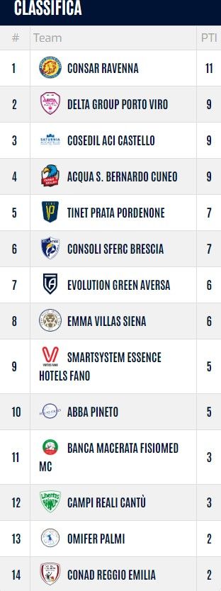 Във временното класиране отборът на Вълчинов е единадесети, а тимът на Гордан Люцканов е седми. Начело е Консар Равена, където играе Мануел Златанов.