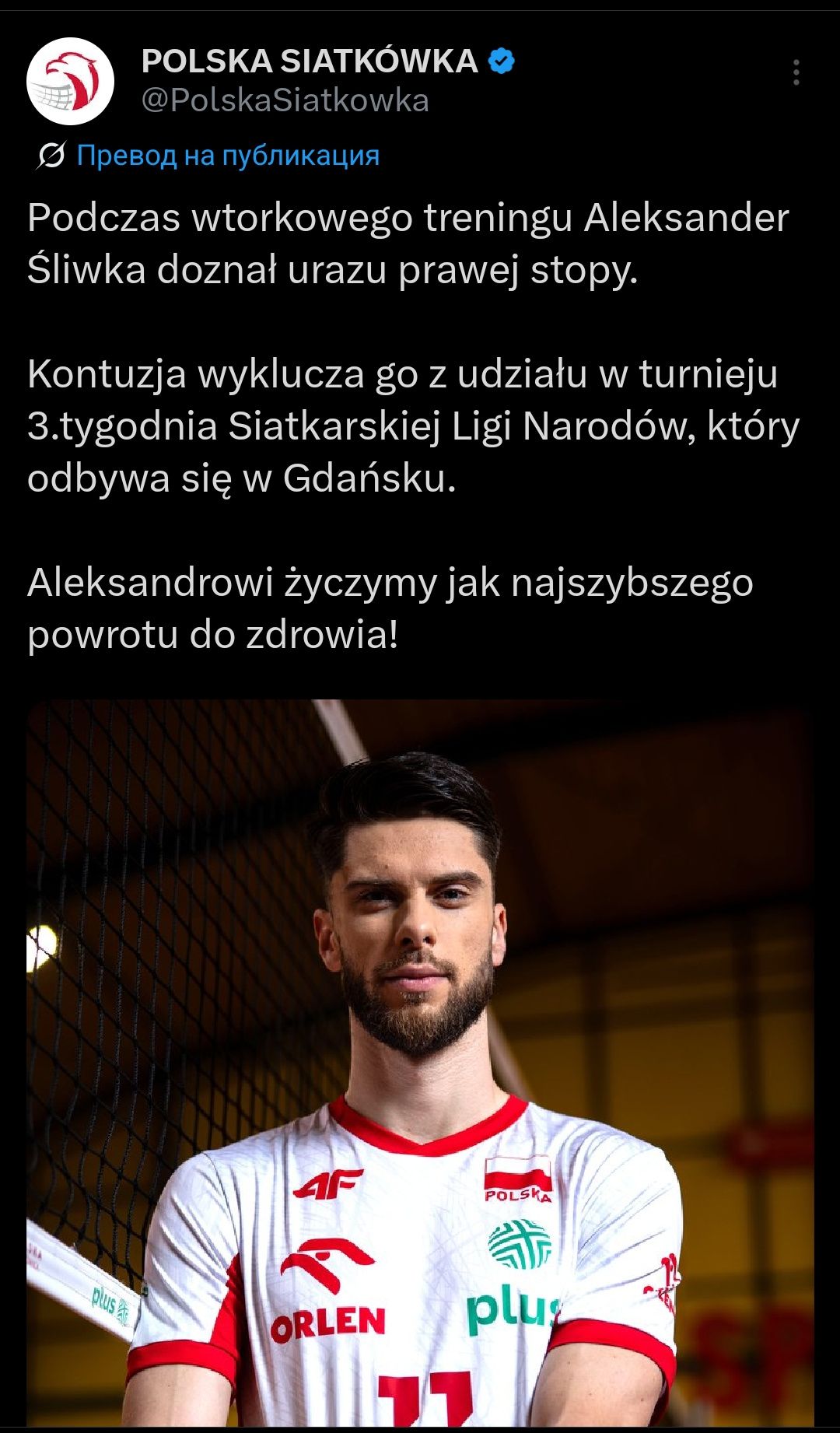Late on Tuesday evening, it became clear that one of 'Druzyna Polska's' key receivers, Aleksander Sliwka, suffered a right leg injury during practice. This automatically rules him out of the remaining matches of the team in the third week of the Nations League. He was supposed to play today against Iran, but now coach Nikola Grbic will be forced to rearrange the lineup.