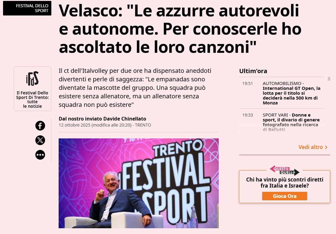 As reported by "Gazzetta," Velasco explained during the Sports Festival in Trento that the group ofthe Azzurreneeds to be expanded, and the Volleyball Nations League 2026 will serve as a ground for the growth of the new generation. The Italian Serie A1, the strongest championship in the world, will be used as a "technical laboratory" for continuous monitoring of young talents.