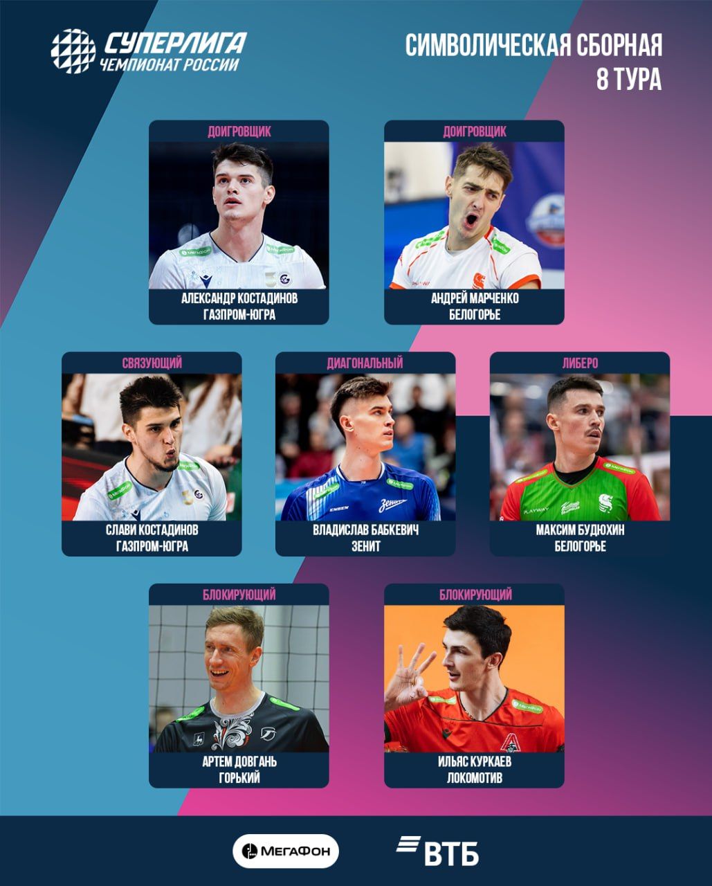 Despite the absence of their leading setter, Lokomotiv Novosibirsk is still present in the ideal seven through captain Ilyas Kurkaev, who was chosen as a middle blocker.