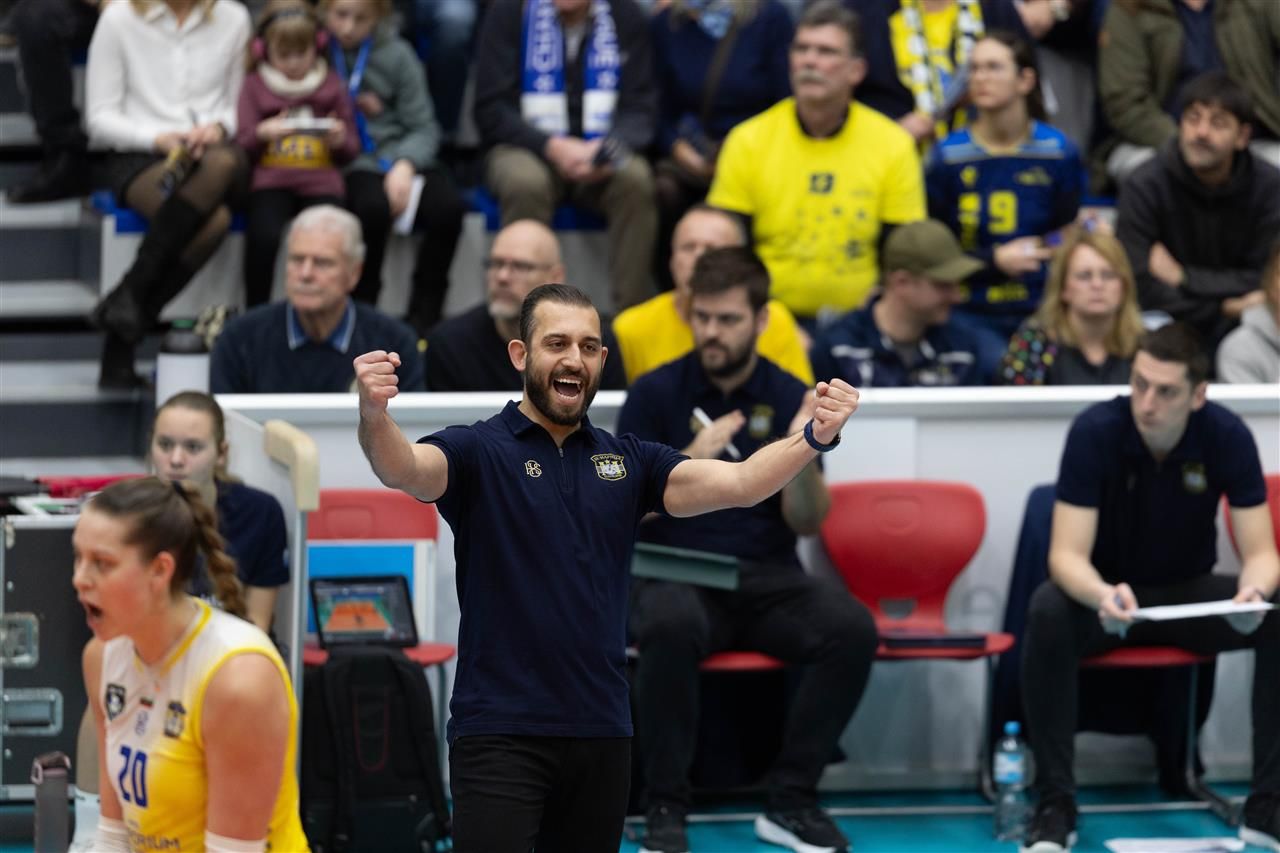 Maritsa (Plovdiv)'s European campaign in the Women's Champions League continued with another tough test in Germany. The Bulgarian champion lost 0-3 (20:25, 21:25, 17:25) away to Palmberg (Schwerin) in a Group E match, played in front of over 1500 spectators in a hall in Schwerin. An interesting fact is that two coaches who will work together with the Dutch national team faced each other.