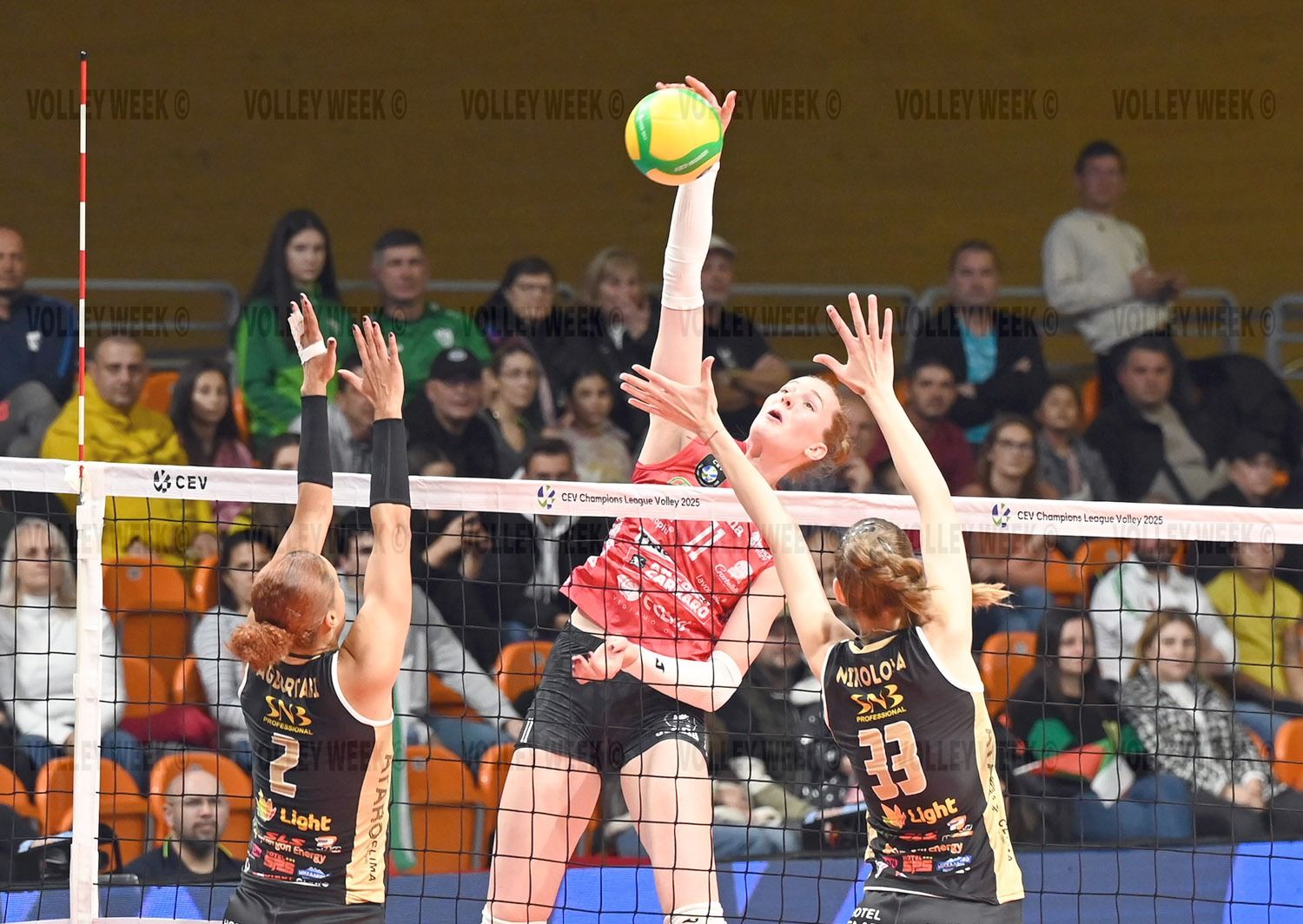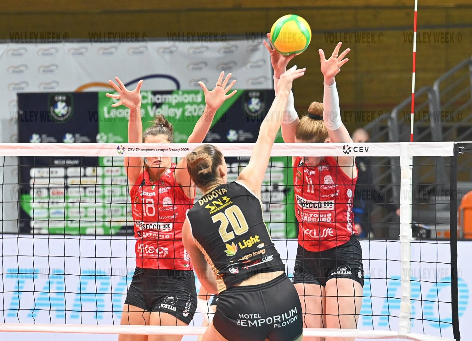 The Bulgarian champion started the match very focused in "Kolodruma" hall and was completely equal to the Italian grand in the first set, even having a chance to win it. The set went point for point until 14:13 in favor of the guests, when a series of strong serves by Lora Slavcheva helped Maritsa take a 19:14 lead. It reached 22:18 for the "yellow-blues", but in the decisive moments, the Conegliano team showed its superior class and with the help of its solid block, made a comeback to snatch the set 25:23.